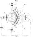 В первом случае дискриминатор 46 передает по двусторонней многоканальной информационной связи в вычислитель 29 сигнал на включение генератора импульсов 43, поступающий с дополнительного выхода вычислителя 29 на вход генератора импульсов 43, в результате чего упомянутый генератор выдает серию импульсов в электропривод 42, приводящий в движение исполнительный механизм инжектора металлических частиц 35. В результате поворотный диск 39 поворачивается на угол, обеспечивающий замену выступающего из овального баллона участка поворотного диска 39, очищенного от суспензии 38, участком этого диска, смоченным суспензией 38.In the first case, the discriminator 46 transmits a signal for switching on the