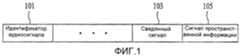 При использовании схемы кодирования для воспроизведения аудиосигнала для трансляции или подобного, аудиосигнал может включать в себя вспомогательные данные, а также идентификатор 101 аудиосигнала и сведенный сигнал 103. Настоящее изобретение может включать в себя сигнал 105 пространственной информации в качестве вспомогательных данных. Для информирования устройства декодирования аудиосигналов об основной информации аудиокодека без анализа аудиосигнала, аудиосигнал может выборочно включать в себя идентификатор 101 аудиосигнала. Идентификатор 101 аудиосигнала состоит из небольшого объема основной информации, необходимой для декодирования аудиосигнала, такой как скорость передачи передаваемого аудиосигнала, количество каналов, частота выборки сжатых данных, идентификатор, указывающий на используемый в текущий момент аудиокодек, и т.п.When using a coding scheme for reproducing an audio signal for broadcast or the like, the audio signal may include auxiliary data as well as an
