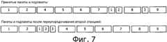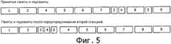 а) Первая станция не должна использовать порядковый номер для подпакета, пока все передачи пакета с этим порядковым номером не закончатся. Например, в соответствии с примером, проиллюстрированным на Фиг.9, вторая станция принимает 1, 2, 3, 6, 4, 7, 8, 9, 4', 5', где символ ″'″ используется для указания подпакета (меньший прямоугольник). Имеющий порядковый номер 5 пакет не удалось принять (указано на Фиг.9 посредством заштрихованного прямоугольника), и он повторно передается, используя подпакеты, содержащие номера 4 и 5. Пакеты и подпакеты переупорядочиваются в 1, 2, 3, 4, 4', 5', 6, 7, 8, 9. Первая станция не использует повторно номера 4 и 5 для повторных передач подпакета пакета, имеющего порядковый номер 5, до тех пор, пока передача пакета с порядковым номером 4 не будет завершена успешно.a) The first station shall not use the sequence number for the subpacket until all packet transmissions with this sequence number have ended. For example, in accordance with the example illustrated in FIG. 9, the second station receives 1, 2, 3, 6, 4, 7, 8, 9, 4 ', 5', where the symbol ″ ″ is used to indicate a subpacket (a smaller box ) The packet having the