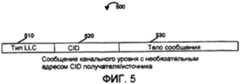 Фиг.5 иллюстрирует примерное сообщение 500 в соответствии с настоящим изобретением, которое использует идентификатор соединения фиг.4. Примерное сообщение 500 является сообщением канального уровня, которое включает в себя адрес CID /источника. Адрес CID /источника является необязательным полем в сообщениях канального уровня в соответствии с некоторыми вариантами осуществления настоящего изобретения. Сообщение 500 канального уровня включает в себя поле 510 типа управления канальным уровнем (LLC), идентифицирующим тип тела 530 сообщения, включенного в сообщение 500. CID является ID соединения в виде ID 400 соединения фиг.4. В одном варианте осуществления этого изобретения поле 520 CID идентифицирует точку физического подключения получателя, когда послано из конечного узла в узел доступа, в соответствии с изобретением, и идентифицирует физическое подключения источника, когда послано из узла доступа в конечный узел, в соответствии с изобретением.FIG. 5 illustrates an
