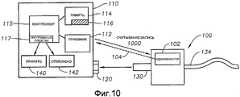 В другом варианте осуществления, как показано на фиг.10, считыватели и метки РЧИД системы и компонента могут конфигурироваться на двусторонние применения или применения 1000 считывания/записи. Это применение может потребовать большие возможности данных метки 102 РЧИД, например >100 байтов. В этом варианте осуществления считыватель (или приемопередатчик) может записывать различные типы данных обратно на метку 102 РЧИД для будущего использования или ссылки. Например, считыватель 112 РЧИД может записывать информацию, такую как дата использования зонда 100, количество раз, сколько использовался зонд 100, количество времени, в течение которого зонд 100 был активным, установка мощности зонда 100, когда он был активным, и т. д. Эта информация может быть особенно полезной, когда зонд 100 используется в более поздний момент времени, так как, например, хирург может просмотреть информацию и сделать оценку в отношении износа и полезного срока службы зонда 100. Например, полезный срок службы зонда 100 может уменьшаться, когда зонд 100 является активным в течение большего периода времени, использовался при установке большей мощности и использовался много раз.In another embodiment, as shown in FIG. 10, RFID readers and tags of the system and component can be configured for two-way applications or read /