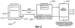 Фиг.2, в основном, иллюстрирует одну примерную систему 200 РЧИД, которая может использоваться с вариантами осуществления. Метка 210 РЧИД обычно включает в себя интегральную схему (ИС), такую как специализированная интегральная схема (специализированная ИС), которая включает в себя память для хранения данных. Приемопередатчик 212 активизируется радиочастотной (РЧ) инструкцией или сигналом 224 от считывателя 220, который посылается при помощи антенны 226 считывателя, например, под действием блока 230 микроконтроллера, и принимается антенной 216 приемопередатчика 212, чтобы беспроводным образом записывать данные или считывать данные из памяти приемопередатчика 212.FIG. 2 generally illustrates one