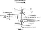 В направлении вперед, как видно стоящему перед индукционной плазменной горелкой 120, как показано на фиг.3, напыление происходит от правого конца к левому концу. Передняя форсунка 122 введения химических реагентов находится впереди центральной линии индукционной плазменной горелки 120, а задняя форсунка 124 введения химических реагентов находится на одной линии с центральной линией индукционной плазменной горелки 120. В обратном направлении, как видно стоящему позади индукционной плазменной горелки 120, как показано на фиг.4, напыление происходит с правой стороны к левой стороне. В данном варианте задняя форсунка 124 введения химических реагентов и передняя форсунка 122 введения химических реагентов переключаются очень быстро с одной на другую еще до начала прохождения. Позиция 1 предназначена для движения вперед, а позиция 2 - для обратного движения.In the forward direction, as seen facing the