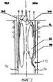 На фиг.7 представлено сравнение моделей течения индукционных плазменных горелок известного уровня техники - слева и настоящей индукционной плазменной горелки 150 - справа. Показаны слой оболочки (SL), который введен ВЧ-катушкой, зона рециркуляции плазмы (RZ) и ламинарное течение (SM) потока плазменного газа. Из фиг.7 видно, что хвост плазмы для плазменных горелок известного уровня техники проходит к впускам 76 плазменных газов. В случае настоящей индукционной плазменной горелки 150 видно, что зона рециркуляции плазмы заканчивается непосредственно над вогнутой секцией 152 и не проходит к впускам 76 плазменных газов. Это обусловлено тем, что диаметр вогнутой секции 152 вынуждает ламинарный поток двигаться к центру трубки и препятствует хвосту плазмы двигаться дальше вверх. Таким образом, зона рециркуляции плазмы становится короче (меньше) на индукционной плазменной горелке 150. Поскольку зона рециркуляции плазмы становится меньше, также снижается положение V=0.Figure 7 presents a comparison of the flow models of induction plasma torches of the prior art on the left and the present