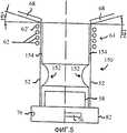 Как показано на фиг.6 и 7, вогнутая секция 152 может использоваться с дополнительными впусками 76 плазменных газов. Например, когда используются четыре впуска 76 плазменных газов, скорость потока для каждого отдельного впуска 76 плазменных газов может быть снижена при поддержании расчетной общей скорости потока. Это улучшает вращательную симметрию 126 (как показано на фиг.3 и 4) факела, или струи, плазмы 74. Это также улучшает стабилизацию факела, или струи, плазмы 74.As shown in FIGS. 6 and 7, the
