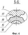 При дальнейшем вращении колонны бурильных труб происходит выправление недожатых гидравлическим давлением стенок труб 22 (фиг.1) до плотного прижатия их к стенкам расширенного участка 20 скважины 21. Нагрузки, воздействующие на вальцующие ролики 5 при этом передаются на толкатель 15, заставляя его совершать вращательное движение вокруг центральной оси корпуса 1. Благодаря взаимодействию выборок 17 (фиг.4) роликов 5 с выступами 19 толкателя 15 исключается проскальзывание роликов 5 относительно развальцовываемых труб 22 (фиг.2), позволяя уменьшить осевую нагрузку на устройство и развальцовываемые им трубы 22.With further rotation of the drill pipe string, the walls of the