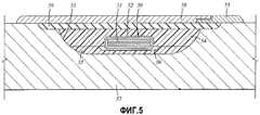 Оставшееся пространство в углублении может быть затем заполнено изолирующим материалом. Подходящий изолирующий материал, например, может быть выбран из эпоксидной смолы, стекловолокна и т.д. Изолирующий наполнитель удержит тороидальную антенну на месте и также изолирует антенну от проводящего воротника бура. Слой резины или эластичного материала может быть также сформирован над верхней частью изолирующего материала и на трубе для герметизирования целой компоновки антенны от скважинных флюидов. На этапе 121 может быть обеспечено углубление с двухъярусным или ступенчатым профилем глубины (см., например, фиг.5, 6, 8), чтобы облегчить формовку слоя резины на одном уровне с поверхностью трубы. Подходящие эластичные материалы включают фтороэластомер, продаваемый DuPont Dow Elastomers под торговой маркой VITON™ (Уилмингтон, Делавэр). Относительно тонкий слой резины или эластика (например, 0,05 дюймов [1,3 мм] в толщину) обеспечивает надежную герметизацию.The remaining space in the recess may then be filled with insulating material. Suitable insulating material, for example, may be selected from epoxy resin, fiberglass, etc. An insulating filler holds the toroidal antenna in place and also isolates the antenna from the conductive drill collar. A layer of rubber or elastic material can also be formed above the top of the insulating material and on the pipe to seal the entire antenna assembly from the wellbore fluids. At