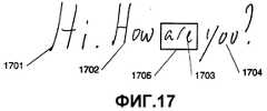 Фиг.8 может включать или может не включать столбец H8 разделительного знака, который разделяет две строки. Это потому, что в некоторых языках не используется строка разделительных знаков между строками. Например, в основанных на знаках языках (например, китайский язык) могут не использоваться пробелы. В этих ситуациях может использоваться пустой знак вместо столбца разделительного знака. Распознаватель может обеспечивать столбец разделительного знака или пустой знак, что требуется. Например, в чернильном предложении с английскими словами, за которыми следуют японские знаки, за которыми следуют еще английские слова, можно проводить синтаксический разбор и направлять различные части на соответствующие распознаватели (например, посредством идентификации чернил по языку или распознавателем). Распознаватель английского языка может возвращать альтернативы, связанные разделительными пробелами. Распознаватель японского языка может возвращать альтернативы, связанные пустыми знаками. Выходные результаты могут объединяться для получения единственной решетки с комбинацией столбцов разделительного знака и пустых знаков, разделяющих результаты от разных распознавателей. Конечно, использование распознавателей, которые создают одинаковый тип разделительного пробела/пустого знака (например, распознаватели английского и французского языка) могут приводить к тому, что запоминается только один разделительный пробел/пустой знак, а не два, так как используется одинаковый тип лингвистической модели.FIG. 8 may or may not include a separator character column H8 that separates two rows. This is because in some languages a line of separator characters between lines is not used. For example, character-based languages (such as Chinese) may not use spaces. In these situations, a blank character may be used instead of a separator column. The recognizer may provide a column of a separation character or a blank character that is required. For example, in an ink sentence with English words, followed by Japanese characters, followed by English words, you can parse and direct the various parts to the corresponding recognizers (for example, by identifying the ink by language or recognizer). The English recognizer may return alternatives associated with delimiting spaces. The Japanese language resolver may return alternatives associated with blank characters. Output results can be combined to produce a single lattice with a combination of separator columns and blanks separating the results from different recognizers. Of course, the use of recognizers that create the same type of separation space / blank (for example, English and French recognizers) can lead to the fact that only one separation space / blank is remembered, and not two, since the same type of linguistic model is used.