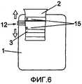 Другие варианты выполнения выпускного средства в пакете для сбора текучей среды согласно изобретению показаны на фиг.6 и 7. Например, как показано на фиг.6, выпускное средство может включать отрывные средства 12 для разрушения невозвратного клапана 3, поскольку предусмотрены две точки 15 сварки, соединяющие гибкий невозвратный клапан 3 с пленкой мешка. Другой вариант выполнения показан на фиг.7, где отрывная полоса 13 предусмотрена в мешке 1 для обеспечения обхода невозвратного клапана 3 и обеспечения вытекания собранной текучей среды из отделения сбора текучей среды к входному отверстию 1.Other embodiments of the outlet means in the fluid collection bag according to the invention are shown in FIGS. 6 and 7. For example, as shown in FIG. 6, the outlet means may include tear-off means 12 for breaking the