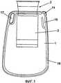 Гибкий мешок предпочтительно выполнен из двух слоев листа гибкой пленки по существу идентичной формы, соединенных друг с другом вдоль своей периферии с фланцем входного отверстия, предусмотренного между указанными пленочными листами, и при этом указанные листы соединены с фланцем входа вместо соединения друг с другом в месте фланца входного отверстия пакета. За счет этого можно изготавливать мешок и устанавливать вход и выполнять герметизацию в одном и том же процессе сварки.The flexible bag is preferably made of two layers of a sheet of flexible film of substantially identical shape connected to each other along its periphery with an inlet flange provided between said film sheets, and wherein said sheets are connected to the inlet flange instead of being connected to each other at the flange package inlet. Due to this, you can make a bag and install the input and perform sealing in the same welding process.