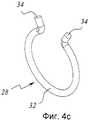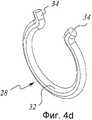 Фиг.4е показывает дополнительный вариант осуществления фиксирующего элемента 28, имеющего множество сегментов 32а, прикрепленных к дугообразной корпусной части 32 посредством штифтов 52 или других пригодных средств крепления, таких как винты, болты, заклепки, клеи, сварные швы, отогнутые кромки, скобы, зажимы, соединительные элементы, устанавливаемые по посадке с натягом, или тому подобное. Данная конструкция с множеством сегментов обеспечивает дополнительную гибкость в отношении площади кольцевой опорной поверхности, пороговой силы, требуемой для отделения выступов для разблокировки, и использования композиционных материалов в конструкции.Fig. 4e shows an additional embodiment of a locking