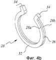 Фиксирующий элемент 28 может иметь в поперечном сечении квадратный, прямоугольный, круглый или овальный профиль, как показано соответственно на фиг.4а, 4b, 4с, 4d. Также могут быть использованы другие соответствующие профили поперечного сечения. Кроме того, на фиг.4b показан фиксирующий элемент, который является многослойным и содержит две прочно соединенные половины 28а и 28b. Как разновидность данного варианта осуществления, фиксирующий элемент может быть выполнен в основном как единый компонент, но может включать в себя прорезь или прорези 36 для придания характеристик частично или полуламинированной конструкции. В этой связи ламинирование или частичное ламинирование фиксирующего элемента может обеспечить более высокое сопротивление динамическому нагружению, чем цельная или «унитарная» конструкция.The locking