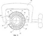 Фиг.5 показывает альтернативный инструмент для разблокировки в виде циркуля 50, который может быть использован для раздвигания выступов 34 для разблокировки при использовании сегментного фиксирующего элемента по фиг.4е, выполненного с такой конструкцией, что он потребует сравнительно меньшего усилия для отделения.FIG. 5 shows an alternative unlocking tool in the form of a