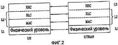 Фиг.2 представляет схему концептуального представления, иллюстрирующую плоскость управления структуры интерфейсного протокола радиосвязи между UE и UTRAN (наземной сетью радиосвязи с абонентами UMTS), основанной на стандарте сети радиосвязи с абонентами 3GPP. Интерфейсный протокол радиосвязи горизонтально представлен физическим уровнем, уровнем канала передачи данных и сетевым уровнем. Интерфейсный протокол радиосвязи вертикально представлен плоскостью пользователя для передачи данных и плоскостью управления для передачи управляющих сигналов.2 is a conceptual diagram illustrating a control plane of a structure of a radio communication interface protocol between a UE and a UTRAN (Terrestrial Radio Communication Network with UMTS Subscribers) based on the 3GPP Radio Communication Network Standard. The radio communication interface protocol is horizontally represented by the physical layer, the data link layer and the network layer. The radio communication interface protocol is vertically represented by a user plane for transmitting data and a control plane for transmitting control signals.