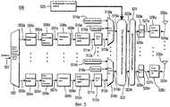 Кодированные данные после согласования скорости 507а-507n предпочтительно повергнуть перемежению перемежителями 508а-508n. Биты данных после перемежения 509а-509n отображаются затем в символы 511а-511n блоками 510а-510n отображения групп согласно выбранной схеме модуляции. В качестве схемы модуляции могут быть использованы BPSK, QPSK, 8PSK, 16QAM, 64QAM или аналогичные схемы модуляции. Символы 511а-511n в каждом потоке данных обрабатываются блоками FFT 512а-512n, которые выдают данные 513а-513n частотной области. Данные 514а-514n управления и/или пилот-сигналы 516а-516n мультиплексируются с данными 513а-513n частотной области мультиплексором 518а-518n. Данные 519а-519n частотной области (в том числе мультиплексированные данные 514а-514n управления и/или пилот-сигналы 516а-516n) обрабатываются блоком 522 пространственного преобразования.The encoded data, after matching the