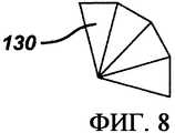 Фиг.8 - вид, аналогичный виду, представленному на фиг.7, но показывающий наполнители 130 в их искривленной конфигурации.Fig. 8 is a view similar to that shown in Fig. 7, but showing