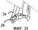 фиг.23 представляет фрагмент показанного на фиг.14 устройства на виде с его проксимального конца иFig.23 is a fragment shown in Fig.14 of the device in a view from its proximal end and