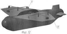 Фиг.12. Вариант выполнения несущей плоскости, аналогичной крылу самолета.Fig. 12. An embodiment of a carrier plane similar to an airplane wing.