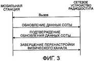 Сетевое устройство 2 радиодоступа посылает на мобильную станцию 1 информацию вызова. Мобильная станция 1 сообщает данные соты (CELL UPDATE), в которой мобильная станция находится в текущий момент времени.The radio
