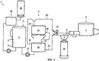 Система подачи воды 2 может включать резервуар для воды 9, как показано на чертеже, или может быть напрямую присоединена к водопроводу. Далее система подачи воды 2 включает насос 12 и соответствующие линии подачи, которые могут быть реализованы различными способами. В этом смысле не следует использовать фиг.1 как ограничение.The