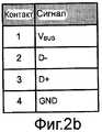 Фиг.2b - таблицу сигналов для контактов в известном USB-соединителе;Fig.2b is a table of signals for contacts in a known USB connector;