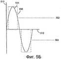На фиг.5A-5С проиллюстрировано несколько вариантов осуществления дискретизации. На фиг.5A, на которой изображена зависимость величины 510 сигнала от времени 512 для сигнала 514, показана однобитовая (двухуровневая) дискретизация относительно опорного напряжения или порогового значения 516. Видна явная погрешность между дискретизированным сигналом 518 и сигналом 514. На фиг.5Б показана двухбитовая (трехуровневая, то есть 1, 0 и -1) дискретизация относительно опорных напряжений или пороговых значений 552 и 554. Также видна явная погрешность между дискретизированным сигналом 556 и сигналом 514. Однако погрешность является меньшей, это аналогично тому, как происходит уменьшение погрешности при численном интегрировании с использованием правила Симпсона, поскольку уменьшен интервал Δx вдоль оси 512 времени. На фиг.5В показана трехбитовая (четырехуровневая) дискретизация относительно опорных напряжений или пороговых значений 582, 584 и 586. Погрешность между квантованным сигналом 580 и сигналом 514 уменьшена в еще большей степени. Также имеется двухбитовый (четырехуровневый) вариант осуществления, хотя он и не показан на чертежах.5A-5C illustrate several embodiments of sampling. On figa, which shows the dependence of the