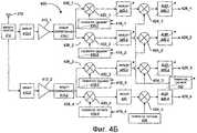 В других вариантах осуществления изобретения канал 400 и/или канал 450 могут иметь меньшее или большее количество компонентов. Функции двух или большего количества компонентов могут быть реализованы в одном компоненте. В альтернативном варианте функции некоторых компонентов могут быть реализованы в дополнительных экземплярах компонентов. Несмотря на то, что на чертежах фиг.4A и фиг.4Б проиллюстрированы четыре схемы 436 подканалов, в некоторых вариантах осуществления изобретения может содержаться меньшее или большее количество схем 436 подканалов. И хотя это и не показано на фиг.4A и фиг.4Б, канал 400 и канал 450, а также в других вариантах осуществления приемника 200 (фиг.2) могут быть использованы квадратурная регистрация и выборка. Это приводит к получению комплексных (синфазной I и квадратурной Q) выборок и может обеспечивать преимущества.In other embodiments,