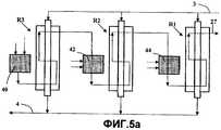 На фиг.5а и 5b изображены упрощенные схемы осуществления способа согласно изобретению в установках, содержащих несколько реакторов-теплообменников.On figa and 5b depicts simplified diagrams of the implementation of the method according to the invention in plants containing multiple reactors, heat exchangers.