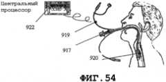 на фиг.53-55 графически представлены другие варианты осуществления изобретения, в которых резонаторы SAW разного типа присоединяют к системам эндотрахеальных трубок для вентиляции легких;on Fig-55 graphically presents other embodiments of the invention, in which SAW resonators of various types are connected to endotracheal tube systems for ventilation of the lungs;