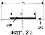 На фиг.21-24 показаны преимущества элемента зуммерного типа для возбуждения SAW на поверхности медицинского устройства. Геометрия зуммера допускает применение очень тонкого слоя пьезоэлектрического материала, механически прикрепленного к тонкому слою дисковидной формы, выполненному из металла или электропроводящего пластика. Тонкие пьезоэлементы такой многослойной конструкции с разными D, d1 и d2 позволяют возбуждать собственные колебательные моды с высокими значениями n и m гармоник. На фиг.21 показан тонкий пьезоэлемент 280 дисковидной формы, прикрепленный к опорной пластине 282 дисковидной формы. Опорная пластина 282 может быть выполнена из металла, пластика или композиционного материала с проводящими свойствами. На фиг.22 показан такой элемент, состоящий из пьезоэлектрических дисков 280А и 280В с соответствующими диаметрами d1 и d2, прикрепленных с обеих сторон к опорной пластине 282 диаметром D. На фиг.23 показан вариант осуществления, в котором пьезоэлемент 280 вместе с опорной пластиной 282 содержит отверстие 281. Один или несколько пьезоэлементов 280, которые электрически изолированы элементами 283, можно прикреплять с одной стороны опорной пластины 282. Посредством подачи сигналов разной частоты в данные пьезоэлементы можно возбуждать виды колебаний разных собственных мод. Экспериментальные результаты показали, что для повышения устойчивости стоячей волны, при использовании второй и высших гармоник тонкого биморфного пьезоэлемента, слой пьезоэлектрического материала должен быть снят в центральной части опорной пластины. Оптимальный (с точки зрения энергетической эффективности) процесс создания нановибрационного покрытия на поверхности медицинского устройства можно обеспечить, когда отношение между слоем пьезоэлетрического материала и металлическим слоем в биморфном пьезоэлементе находится в диапазоне от приблизительно 0,95 до приблизительно 1,35. Тонкие пьезоэлементы обеспечивают преимущество создания более однородного нановибрационного покрытия на поверхности медицинского устройства. Данная особенность желательна, когда один и тот же резонатор SAW присоединяют к медицинским устройствам нескольких типов, которые отличаются одно от другого по материалам, геометрическим параметрам и свойствам образования биопленки. На фиг.25-34 показано несколько предлагаемых конструкций тонкого пьезоэлемента, когда геометрия медицинского устройства требует применения тонких пьезопластин. Пьезоэлементы такой же конструкции можно применять, когда на поверхности медицинского устройства требуются разные SAW-процессы. Геометрия и материал некоторых медицинских устройств могут требовать возбуждения разных SAW-процессов для обеспечения однородной защиты от биопленки. На фиг.25 показан пьезоэлемент типа тонкой пластины, края которого возбуждают разные SAW-процессы. На фиг.26 показана пьезопластина 280 с прямоугольным отверстием 281. Пьезопластины 280 комбинированной формы показаны на фиг.28.On Fig-24 shows the advantages of the buzzer type element for exciting SAW on the surface of the medical device. The buzzer geometry allows the use of a very thin layer of piezoelectric material mechanically attached to a thin disk-shaped layer made of metal or electrically conductive plastic. Thin piezoelectric elements of such a multilayer design with different D, d1 and d2 allow you to excite your own vibrational modes with high values of n and m harmonics. On Fig shows a thin