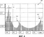 на фиг.4 схематично показана спектральная диаграмма SAW в медицинском устройстве, когда используют моду продольных автоколебаний тонкого пьезоэлемента для предотвращения образования биопленки и/или уничтожения биопленочных образований, в соответствии с некоторыми вариантами осуществления настоящего изобретения;4 schematically shows a SAW spectral diagram in a medical device when a longitudinal self-oscillation mode of a thin piezoelectric element is used to prevent biofilm formation and / or destruction of biofilm formations, in accordance with some embodiments of the present invention;
