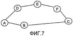 На фиг.7 показана примерная ячеистая сеть для того, чтобы помогать понимать настоящее изобретение. Например, тракт от узла A к узлу C состоит из линий связи AB, BC и промежуточного узла B.7 shows an exemplary mesh network in order to help understand the present invention. For example, the path from node A to node C consists of communication lines AB, BC and intermediate node B.