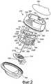 Чтобы закрепить установочное устройство 310' внутри упаковки после использования, по меньшей мере, часть упаковки снабжена суженым местом. В одном варианте осуществления такое суженое место частично выполнено в виде круглой части с меньшим диаметром и центром С2. Сужение может быть выполнено в виде комбинации из уменьшенного сечения, например, сформированного по линии В-В и, по меньшей мере, одного выступа, продолжающегося внутрь на уровне закраины.To fix the installation device 310 'inside the package after use, at least part of the package is provided with a narrowed space. In one embodiment, such a narrowed place is partially made in the form of a circular part with a smaller diameter and center C2. The narrowing can be made in the form of a combination of a reduced section, for example, formed along the line BB and at least one protrusion, continuing inward at the level of the flange.