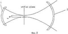 Однако при практическом использовании, поскольку сборка и настройка концентрической резонансной полости являются сложными операциями, может быть применена неконцентрическая резонансная полость (например, конфокальная резонансная полость), но в этом случае пятно будет больше.However, in practical use, since the assembly and adjustment of the concentric resonance cavity is complex operations, a non-concentric resonance cavity (e.g., a confocal resonance cavity) can be applied, but in this case the spot will be larger.