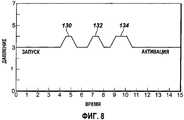 Фиг.8 - схематический вид одного варианта осуществления сигнала давления и времени, используемого для активации переключающей системы, проиллюстрированной на фиг.7, в соответствии с вариантом осуществления настоящего изобретения.FIG. 8 is a schematic view of one embodiment of a pressure and time signal used to activate the switching system illustrated in FIG. 7 in accordance with an embodiment of the present invention.