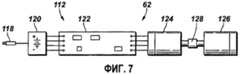 Сигнал давления и времени можно передавать в активационное устройство 112 через посредство измерительного канала 66 или через дополнительный измерительный канал в кожухе 52. Как и в варианте осуществления, изображенном на фиг.2 и 3, измерительный канал может быть открыт во внутреннее пространство 68 кожуха 52, если сигнал давления и времени передается в скважине внутри колонны 46 эксплуатационных труб. Измерительный канал может быть направлен во внутреннее пространство внешнего кожуха 52 для приема сигнала давления и времени, передаваемого по кольцевому пространству ствола скважины, окружающему колонну 30. Прием подходящего сигнала давления и времени заставляет активационное устройство 112 открывать активационный канал 114, подвергая его воздействию гидростатического давления в стволе скважины.The pressure and time signal can be transmitted to the