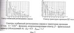 Фрактальный параметр траектории проекции центра тяжести тела на горизонтальную плоскость (βЦТ) находят путем аппроксимации спектра, полученного с помощью встроенной функции компьютерного математического пакета «Mathcad 14» по временной реализации траектории проекции центра тяжести тела на горизонтальную плоскость, полученной при натурном измерении траектории, степенной функцией вида f(-β ЦТ ). Фрактальный параметр ритмограммы сердца (βпульс) находят путем аппроксимации спектра ритмограммы, полученного с помощью встроенной функции компьютерного математического пакета «MathCad 14» по временной реализации ритмограммы сердца, полученной при натурном измерении, степенной функцией вида f(-β пульс ). В обоих случаях аппроксимация спектров проводится методом градиентного спуска (компьютерный пакет «MathCad 14»).The fractal parameter of the trajectory of the projection of the center of gravity of the body on the horizontal plane (βCT ) is found by approximating the spectrum obtained using the built-in function of the computer mathematical package “Mathcad 14” for the temporal realization of the trajectory of the projection of the center of gravity of the body on the horizontal plane, obtained by full-scale measurement of the trajectory, power function of the form f(-βCT) . The fractal parameter of the heart rhythmogram (βpulse ) is found by approximating the spectrum of the rhythmogram obtained using the built-in function of the computer mathematical package "MathCad 14" for the temporal implementation of the heart rhythm obtained by full-scale measurement with a power function of the form f(-βpulse) . In both cases, the approximation of the spectra is carried out by the gradient descent method (computer package "MathCad 14").