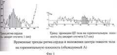 Результаты проведенных экспериментов показали, что полученная оценка является интегральной, так как она включает в себя графический анализ взаимодействия двух важнейших систем организма, управляемых из одного центра - ЦНС: системы поддержания равновесия вертикальной позы и системы регуляции ритма сердца.The results of the experiments showed that the estimate obtained is integral, since it includes a graphical analysis of the interaction of two most important body systems controlled from one center - the central nervous system: a system for maintaining the balance of a vertical posture and a system for regulating heart rhythm.