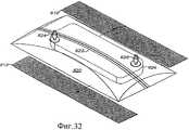 фиг.32 представляет собой вид в аксонометрии перевязочного материала, показывающий удаляемые боковые защитные полосы;32 is a perspective view of the dressing showing removable side protective strips;