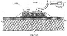фиг.52 представляет собой разрез перевязочного материала, содержащего другой вариант выполнения данного изобретения, с датчиком, подключенным к контроллеру;Fig. 52 is a sectional view of a dressing material containing another embodiment of the present invention, with a sensor connected to the controller;