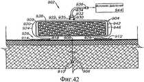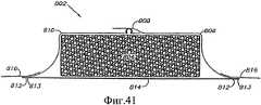 фиг.41 представляет собой разрез другого варианта выполнения перевязочного материала с оболочковой нижней панелью, содержащей впитывающий жидкость материал;Fig. 41 is a sectional view of another embodiment of a dressing with a sheath bottom panel containing a liquid absorbent material;