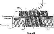 фиг.27 представляет собой разрез вспененного элемента, частично заключенного в оболочку из вискозы;Fig is a section of a foamed element, partially enclosed in a shell of viscose;