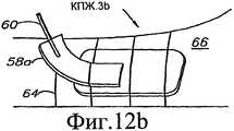 Фиг.11а показывает КПЖ.3, снятый, например срезанием части верхней салфетки 24 для создания в ней отверстия 54. В дополнение, верхняя салфетка 24 может быть прорезана в местах 55 для дополнительной вентиляции КПЖ.2. Дренирование КПЖ.2 под воздействием отрицательного давления и дополнительное осушение его посредством циркуляции воздуха (фиг.11а) может обеспечить значительные преимущества по заживлению посредством снижения роста различных микробов, требующих влажной среды в КПЖ.2. Таким образом, имеющиеся подобные микробы и различные токсины могут быть обезвожены, нейтрализованы и не допущены иным способом к повторному внедрению в пациента. Кроме того, контроль над микробами может быть осуществлен введением антисептиков в различные компоненты средства 12 и их промыванием, включая салфетки 20, 24, КПЖ.1, КПЖ.2, КПЖ.3.11 a shows KPZH.3, taken, for example, by cutting off part of the