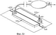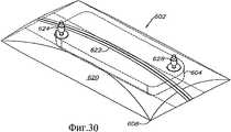 фиг.30 представляет собой вид в аксонометрии перевязочного материала другой конструкции с уплотнительной повторно закрываемой полосой и отверстиями для доступа жидкости;FIG. 30 is a perspective view of a dressing of a different design with a sealing re-closable strip and fluid access openings;