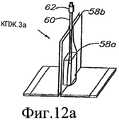 Фиг.11b показывает средство 12 воздействия, удаленное по линиям 56 перфорации нижней салфетки и линиям 59 прорези в верхней салфетке 24. Следует понимать, что по существу, все средство 12, за исключением кромок 20b, 24а нижней и верхней салфетки, может быть удалено, чтобы обеспечить доступ к линии 8 шва и коже 42 для визуального осмотра, оценки состояния, очистки, снятия швов, смены повязки (например, предварительно упакованным средством 12а воздействия, как показано на фиг.11с), с учетом дополнительных вариантов лечения, и т.д. Например, верхняя салфетка 24 может быть прорезана по периметру или основанию КПЖ.2 для его удаления. Предпочтительно, КПЖ.2 может быть легко высвобожден из нижней салфетки 20 и КПЖ.1 и, соответственно, захвачен и поднят вверх для облегчения прохождения скальпеля через верхнюю салфетку 24 в разрез между нижней стороной КПЖ.2 и нижней салфеткой 20. Затем КПЖ.1 может быть, как вариант, удален посредством разрыва нижней салфетки 20 по ее линиям 56 разрыва и снят, как показано на фиг.11b.11b shows the impact means 12 removed along the perforation lines 56 of the lower cloth and the cut lines 59 of the