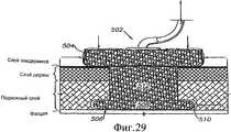 фиг.28 представляет собой разрез другого варианта выполнения системы закрытия тканей с наружным и внутренним вспененными элементами в сборке;FIG. 28 is a sectional view of another embodiment of a tissue closure system with external and internal foam elements in an assembly; FIG.