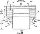 Как иллюстрируется, если внешний слой вентральной стороны 12F вытягивается ниже присоединительных участков 12А, возможно предоставить вытянутый сварной участок, который полностью подвергается термическому уплотнению или подобному, на области, содержащей вытянутую часть в направлении вверх-вниз. Посредством предоставления вытянутого сварного участка возможно предотвратить, что вторые удлиненные упругие и эластичные элементы 16 уменьшатся на растянутом участке 14, описанном ниже. На обычном совмещенном рисунке присоединительные участки 12А, каждый, включают серии небольших сварных точек для более низкой доли сварной области, принимая во внимание легкость разрывания подгузника на обеих сторонах. Однако так как нет необходимости рассматривать легкость разрыва для вытянутого сварного участка, долю сварной области можно сделать больше на вытянутом сварном участке, чем на присоединительных участках 12А так, чтобы вторые удлиненные упругие и эластичные элементы 16 можно было сварить и зафиксировать надежным образом. Альтернативно вытянутый сварной участок можно сварить в виде изогнутой линии на крае покрывающей бедра части 14С для предотвращения таким образом сокращения вторых удлиненных упругих и эластичных элементов 16 на покрывающей бедра части 14С.As illustrated, if the outer layer of the