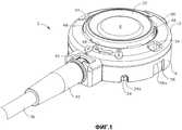 Гибкий стержень 124 опирается на множество ребер 156, выполненных в каждой половине корпуса 102a, 102b, которые поддерживают изгиб гибкого стержня 124, который позволяет передавать вращательное движение на приводной элемент 132, который расположен под углом к стержню корпуса 102. Гибкий стержень 124 может быть выполнен из любого подходящего биосовместимого материала, например нержавеющей стали. В показанном варианте осуществления гибкий стержень 124 имеет многожильную конструкцию, с центральной жилой, содержащей несколько слоев проволоки, намотанной вокруг данной жилы. Концы 124a и 124b гибкого стержня 124 могут быть прикреплены к концу 122b и приводному элементу 132, соответственно, любым подходящим способом, который достаточно ограничивает угловой зазор конца для предотвращения или сведения к минимуму свободного поворотного хода. В показанном варианте осуществления конец 124a был заформован в конец 122b, и конец 124b был запрессован в приводной элемент 132. В качестве альтернативы, конец 124a может быть запрессован в конец 122b, и конец 124b заформован в приводной элемент 132, или тот и другой могут быть запрессованы, или тот и другой могут быть заформованы (с соответствующим изменением конфигурации установочного элемента 104 для обеспечения возможности сборки).The