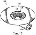 фиг.13 представляет собой покомпонентный вид в аксонометрии усовершенствованного адаптера пониженного давления в соответствии с иллюстративным вариантом выполнения данного изобретения, который содержит элементы, обеспечивающие возможность поворота;13 is an exploded perspective view of an improved reduced pressure adapter in accordance with an illustrative embodiment of the present invention, which includes pivoting members;