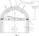 Ионизационные датчики 5 в количестве не менее шести, содержащие несколько изолированных друг от друга электродов, один из которых, отрицательный, - окантовка прокладки 7 головки блока цилиндра 1 (корпус двигателя 6), другие, положительные, - изолированные от корпуса двигателя металлические стержни (ионизационные датчики 5), устанавливаются в прокладку 7 головки блока цилиндра 1 по окружности таким образом, что ионизационные датчики 5 находятся на диаметрально противоположном расстоянии друг от друга.